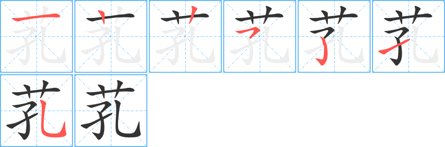 “芤” 字共有 7 画,笔画顺序为:横、竖、竖、横撇/横钩、竖钩、提、竖弯钩