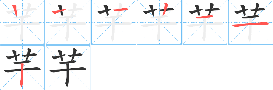 “芉” 字共有 6 画,笔画顺序为:横、竖、竖、横、横、竖
