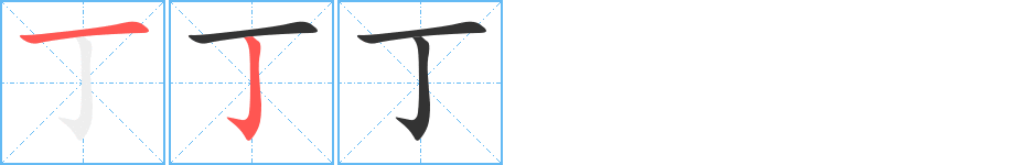 “丁” 字共有 2 画,笔画顺序为:横、竖钩