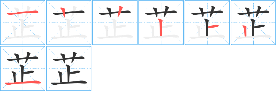 “芷” 字共有 7 画,笔画顺序为:横、竖、竖、竖、横、竖、横